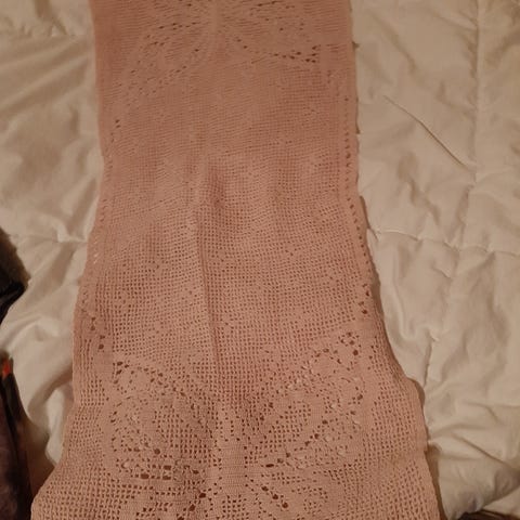 Kaunis, kullankeltainen pitsiliina. Halk.52cm.