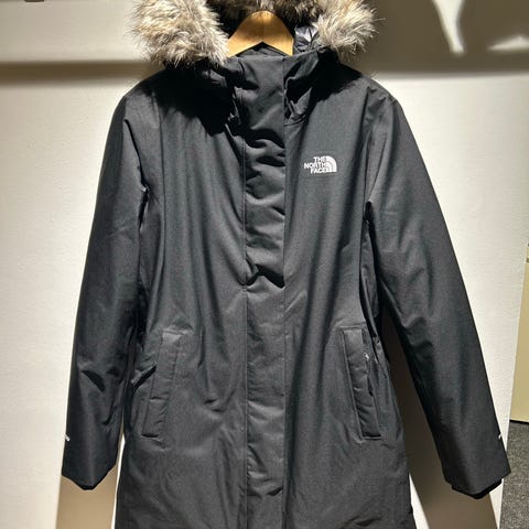 The North Facen musta Acrtic Parka takki, koko M. Ollut käytössä vain yhtenä talvena ja on erittäin hyväkuntoinen. Takissa on untuvatäyte, ulkokuori on valmistettu vedenpitävällä DryVent-teknologialla. Huppu on säädettävä ja irrotettavissa vetoketjulla, hupun tekoturkisreunus on myös irrotettava. Takissa on etuopuolella kaksi vetoketjullista taskua ja sisäpuolella yksi povitasku, jossa vetskari. Sisäiset joustavat resorit hihansuissa. Vyötäröllä on sisäänommeltu joustokirystysnyöri, joka ei ole säädettävä, mutta venyy kyllä. Takin leveys joustokiristysnyörin kohdalta mitattuna noin 47cm, mutta on siis venyvä. Takki on muhkea ja todella lämmin.