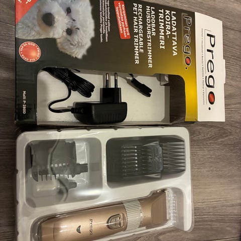 NPF Pet Clipper koiran turkinleikkuri sininen sisältää useita erikokoisia leikkuupäitä ja lisätarvikkeita. Laite on tarkoitettu lemmikkieläinten turkin hoitoon.
