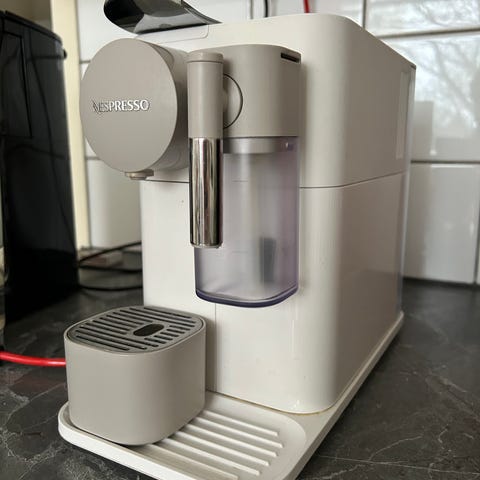 Nespresso UMilk valkoinen. Kompakti kahvikone, jossa on irrotettava veden säiliö ja kapselinsyöttö. Sopii kotikäyttöön pienten kahvimäärien valmistukseen.