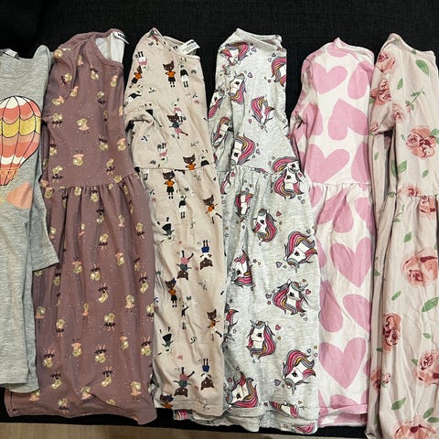 Setti sisältää 2kpl mekkoja ja 1 kpl pitkähihainen paita.