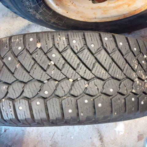 Renkaissa yli 5mm pintaa. Tasaisesti kuluneet paistoleima 23. Matador merkkinen rengas.