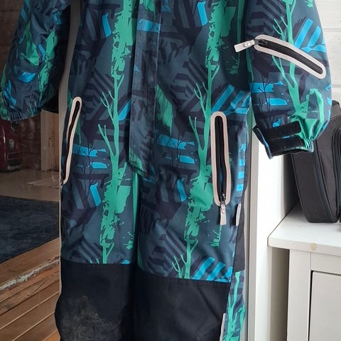 Lämmin Jonathan Kirjava lasten koko neulehaalari, koko 134. Haalarissa on kirjava väritys ja vetoketjusuljenta.
