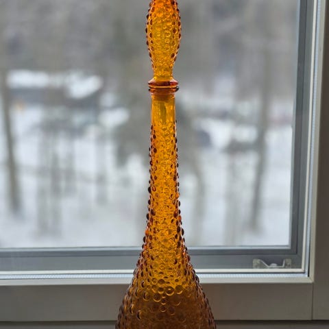 pullo pullot geniepullo lasikarahvi karahvi koristepullo kylpysuolapullo bottle sininen lasipullot lasi lasia lasinen italia Italy retro vintage antiikki antiikkia glassworks diamond cut