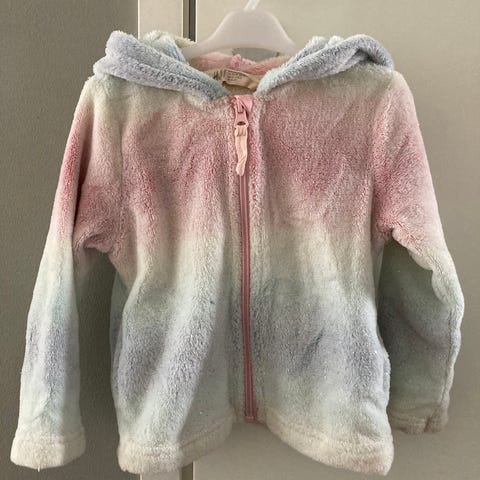 Siisti ja ehjä Fleecehaalari, jossa yksisarviskuvioita. Koko 92.