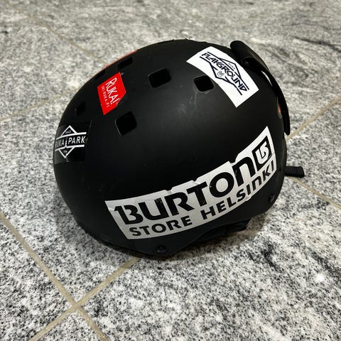 Kerran käytetty Salomonin laskukypärä mallia ”Grom”, koko ”Kid S, 49-53 cm”. Kirkkaan oranssi, joten näkyy hyvin. Kevyt ja hyvät säädöt. Sopii hyvin lasien kanssa ja remmille on takana oma pidike.