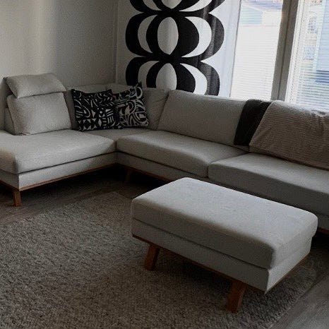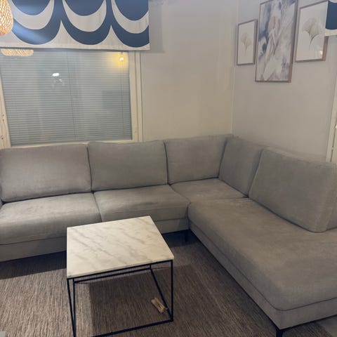 Hyväkuntoinen kulmasohva yhdessä tyynyssä vetoketju rikki.