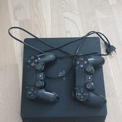 Playstation 4 pelikonsoli 500Gb, mukana kolme ohjainta (kaksi mustaa ja yksi punainen) sekä pelit: Nhl 16-18 ja Nhl 20, Battlefield 1, Battlefield V ja Need for Speed.