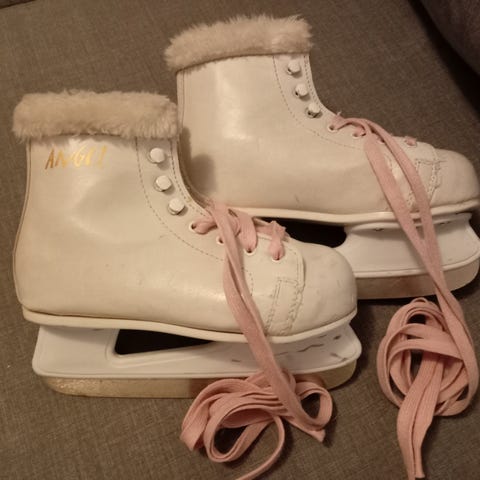 Aurora lasten luistimet, koko 33. Luistimissa valkoinen väri ja pehmeä vuori. Vasta teroitetut, lähes käyttämättömät.