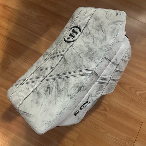 Warrior Ritual G6 E+ maalivahdin kilpi, valkoinen, koko JR. Käytetty kaksi kautta, paljon käytön jälkeä, mutta ehjä ja toimiva kilpi on edelleen. Myös kämmen ja sormet ehjiä, ei reikiä.