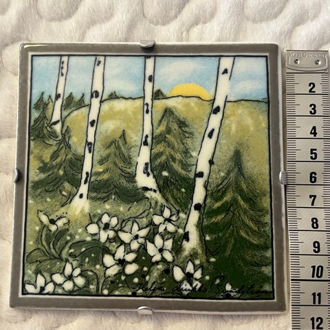 Heljä Liukko-Sundström seinälaatta, jossa on ripustuskoukku takana. Mitta on nyt teillä tietymättömillä, mutta taulu on noin postikortin kokoinen.