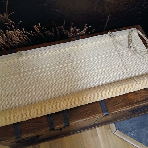 Myydään rullaverho oveen taikka miksei pitkään kapeaan ikkunaankin.