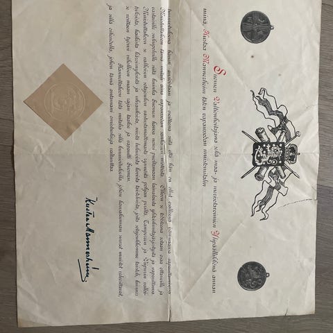 Faksimile jäljennös alkuperäisestä Suomen senaatin Suomen kansalle osoittamasta itsenäisyysjulistuksesta. 45*24cm. Hyväkuntoinen.