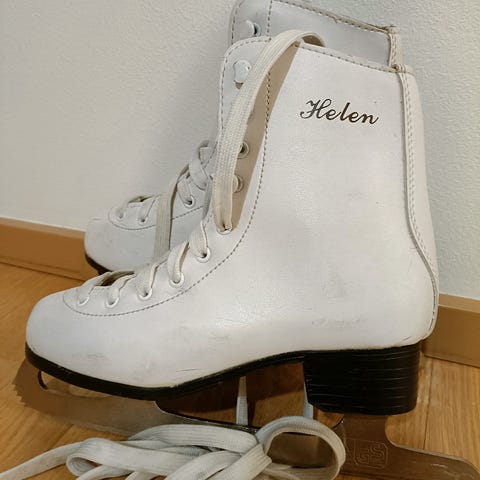 Siistit luistimet. Varret hyvässä kunnossa, ei taittuneet. Terät siistit, ei ruostetta. Pohjan mitta sisältä 22cm. Kulkeutuu omien menojen mukana esim Jukolan S-marketin lähistölle ja Tiiriöön.