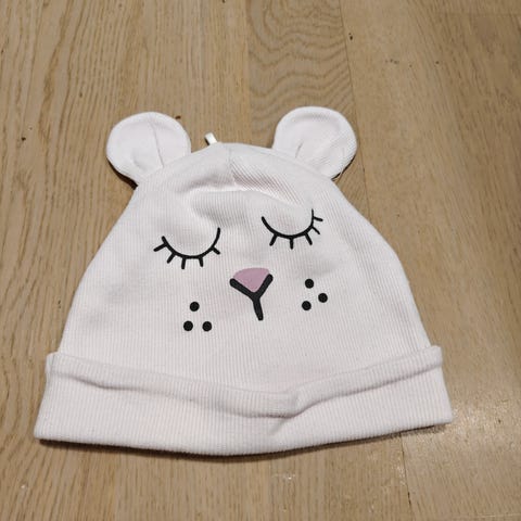 Uusi valkoinen lämmin pipo, jossa korvaläpät. Kokomerkintä 46-48.
