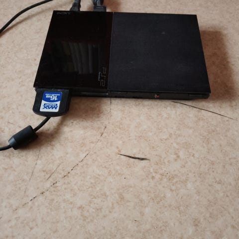 PS2 slim, kahdella 16gb muistikortilla + 1 ohjain ja 9 peliä :)
