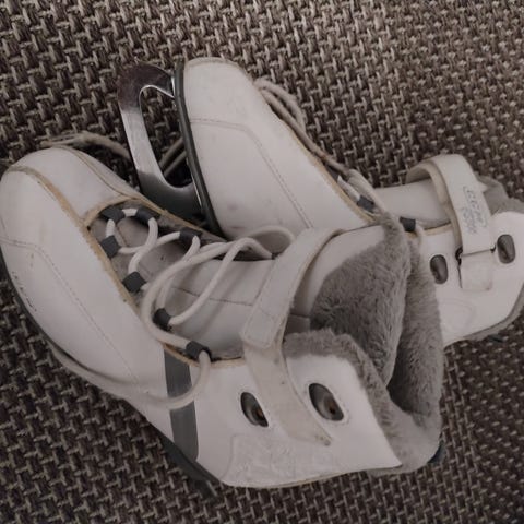 Luistimen ulkopohja on synteettistä nahkaa. Luistimessa on lämmin harjattu Nylon -sisävuori, jossa foam-pehmusteet. Nikkelipäällysteinen Carbonterä, jossa kärkipiikit. Maksaneet uutena 70e.