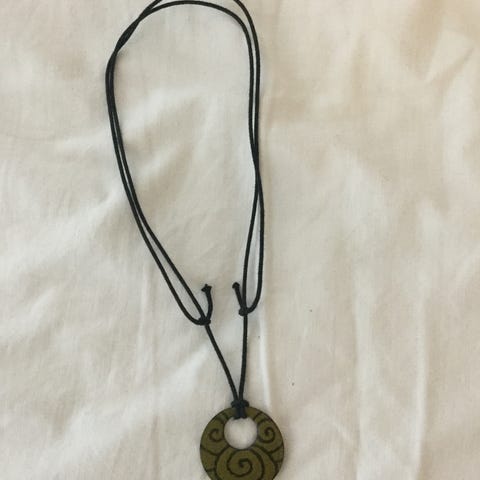 Myydään taiteilija Mikaela Wickströmin käsin maalaama kaulakoru. Käyttämätön. Kaunis ja herkkä teema. Maalattu vanerille.