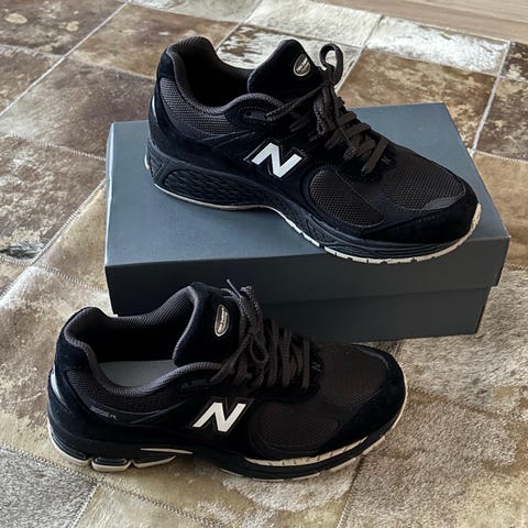 New Balance 2002R "Concrete" -lenkkarit, joissa on mokkanahka- ja verkkopäällinen. Siistissä kunnossa, pesty ja desinfioitu.