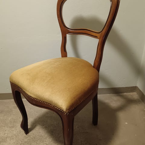Myydään rokokoo-tyylinen kukkakuvioinen tuoli. Jälkiä on puuosissa ja joitain langanpätkiä löytää kun etsii. Ihan siisti tuoli kuitenkin. Haku Jyväskylän keskustasta kiitos. Voin myös tuoda tuolin kotiinkin Jyväskylän keskustasta sanotaanko 5 km säteelle.