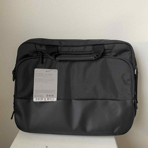 Dell kannettavan tietokoneen virtalähde, jossa on virtajohto.
