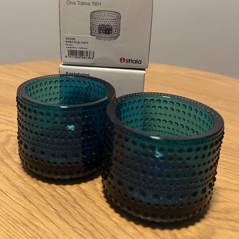 Iittala kastehelmi kynttilälyhty (merensininen) ja alkuperäispakkaukset 2 kpl