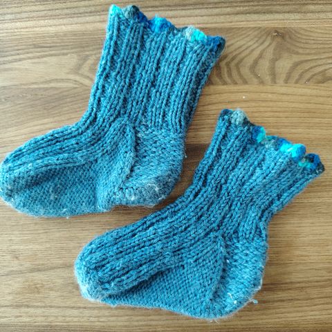 Käsin neulotut siniset villasukat
