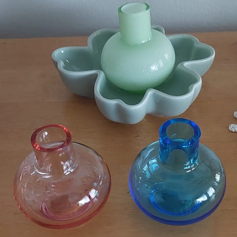 Lasilautanen 30 euroa, mini maljakko 35 euroa.
