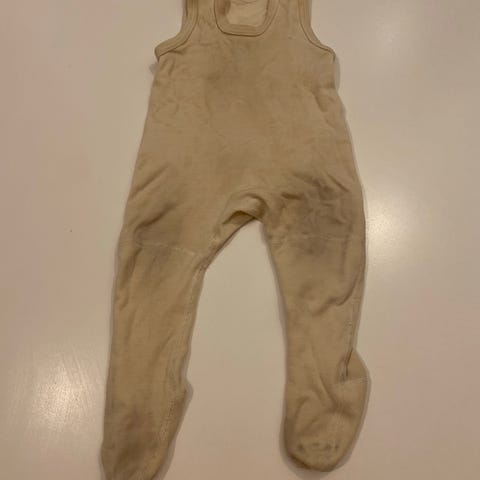 Lämmin luomumerinovilla body. Ehjä, mutta pientä värjäymää kauluksessa, hihansuissa.