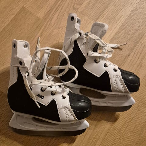 Hyväkuntoiset lasten hokkarit. Ei kokolappua, kuvassa mitta kenkäosan ulkopuolelta.