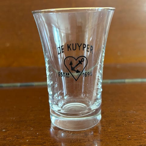 Shottilasit hyvässä kunnossa yhdestä puuttuu tarra.