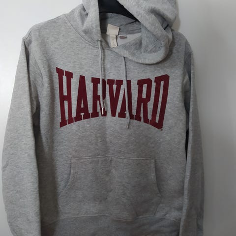 Tummanharmaa Harvad University löysä huppari. Koko XXS. Ostettu H&M:stä. Lähes käyttämätön ja uudenveroinen. Pesulaput tallessa.