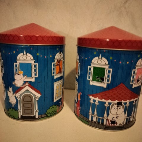 Muumipurkkeja. Isoin huonossa kunnossa kunnossa sisältä! Saa ostaa erikseenkin.