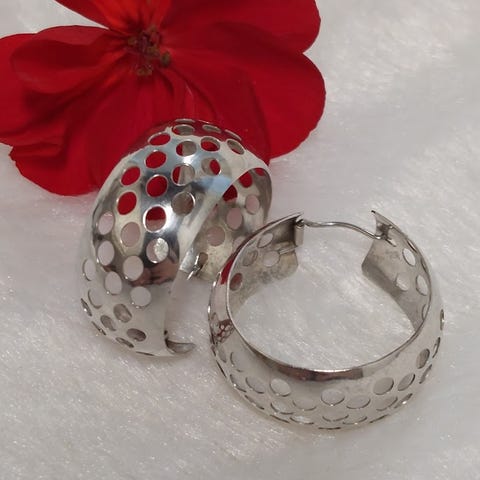 Siistit, Leveät Korvarenkaat. Ovat kotimaiset ja kullattua hopeaa. Korvakoruissa on 3 leimaa.