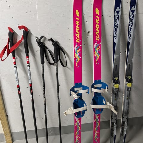 Karhu lasten sukset, pituus 100cm. Sopii lapsille hiihtoharrastukseen. Pitopohja. Sauvat kuuluu mukaan.