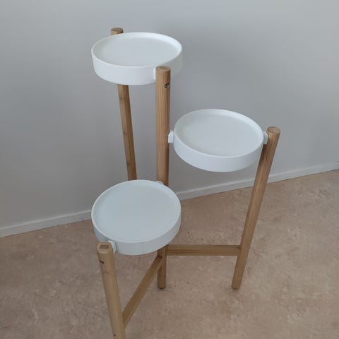 Hyväkuntoinen musta kaksikerroksinen kukkapöytä