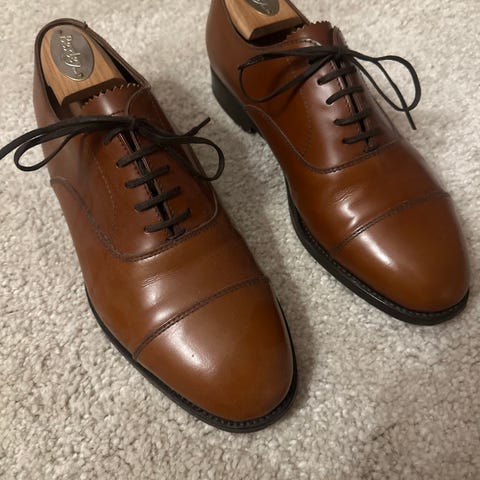 Hienot ja hyväkuntoiset ruskeat Meermin broque oxfordit. Puolipohjatut ja pohja hyvässä kunnossa. Koko 9, itsellä kengät normaalisti n. 42.5 ja nämä muuten sopivat paitsi hieman liian kapeat. Säilytetty lepolesteissä, lepolestit ei kuulu hintaan.