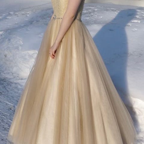 Mekko on ostettu zazabellasta ja kokoa 38, takana nyöritys, joten koko on säädettävissä. Mekko sopii n.168 cm pitkälle.