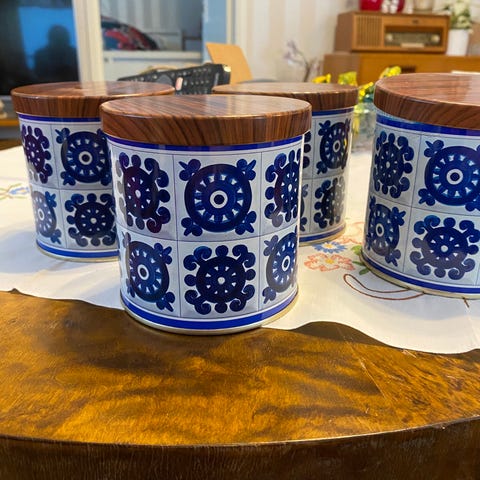 4 kpl sinivalkoisia vintage Viri-kaakaopurkkeja