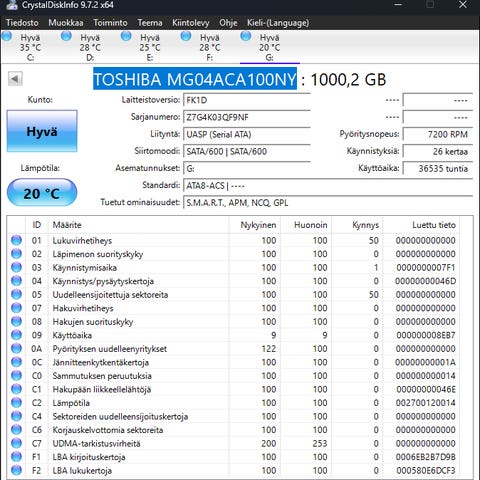 Kunto: Hyvä (CrystalDiskInfo-kuva mukaan)