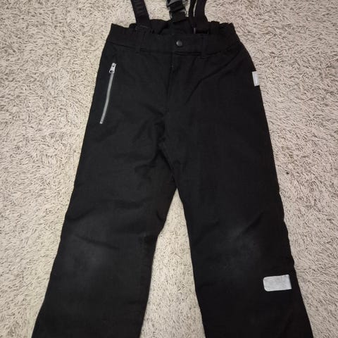 Reima-merkkiset toppahousut kokoa 134 cm, laadukas lasten talvihousu arkikäyttöön ja pulkkailuun. Housuissa lämmin vuori, vahvistetut lahkeet ja lahkeen sisällä kiinnityssukka estämään lumakertymää. Vyötäröllä kuminauha ja kiristysmahdollisuus. Kuvissa näkyvä kunto siisti — selkeästi käytetty mutta hyvin pidetty.