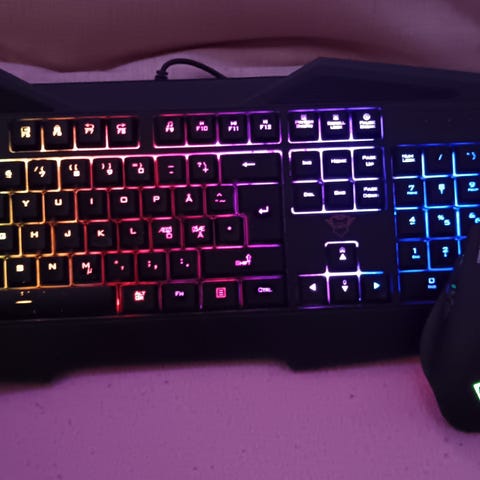 Sininen taustavalaistus. Taustavalon saa erikseen päälle ja pois.