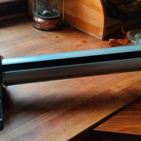 2. Alumiiniputki 150 cm (Vogel's PUC 2515): Tyylikäs musta profiili, jonka sisällä on kourut kaapeleiden piilottamista varten (Cable Inlay System). Putkea voi tarvittaessa lyhentää rautasahalla juuri sopivaan mittaan. (Ovh. n. 100 €)