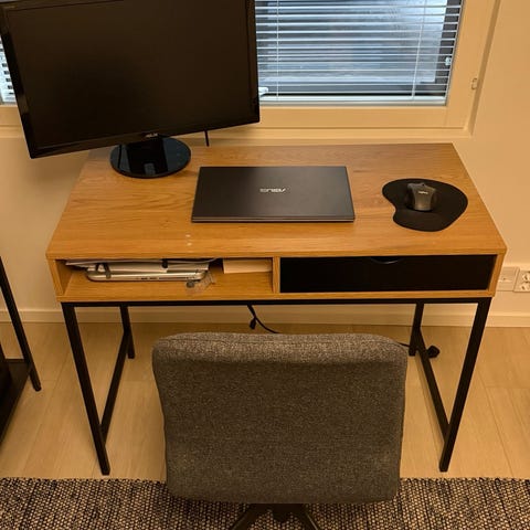 Hyväkuntoinen Jyskin Trappedal-työpöytä.