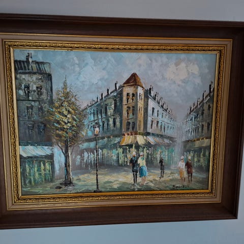 Hyvässä kunnossa värikäs taulu. Koko kehyksineen 53x62cm
