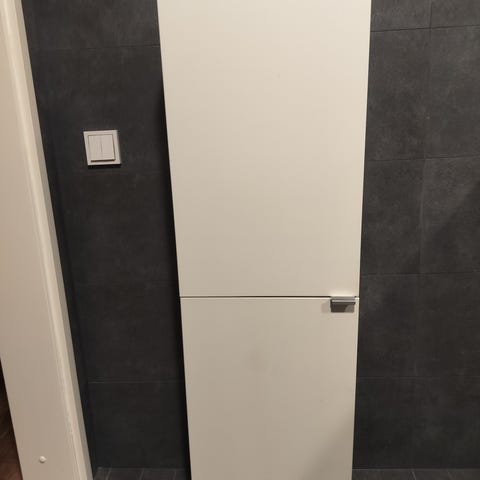 Myynnissä vuoden vanha, valkoinen kylpyhuonekaappi. Kunnoltaan lähes uudenveroinen.