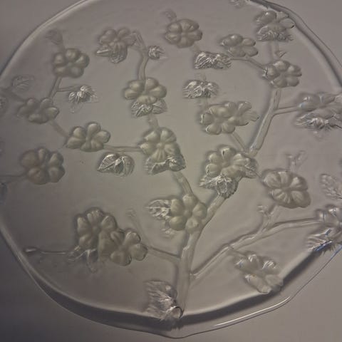 Lasilautanen on ranskalainen Aspen-kuvioitu, jota on ollut tuotannossa vuosikymmeniä. Läpimitta on 28 cm.