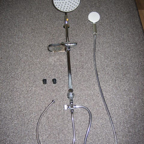 Oras Optima sadesuihkusetti. Toimiva ja hyväkuntoinen. Pitkä juoksuputki.