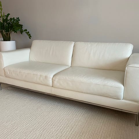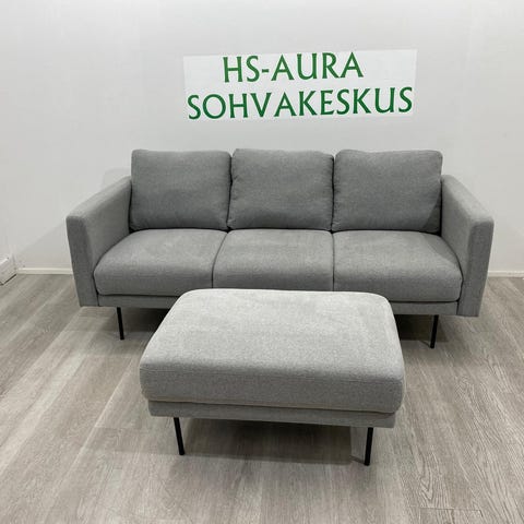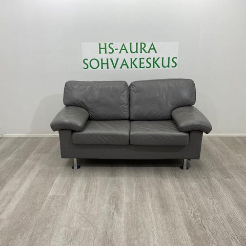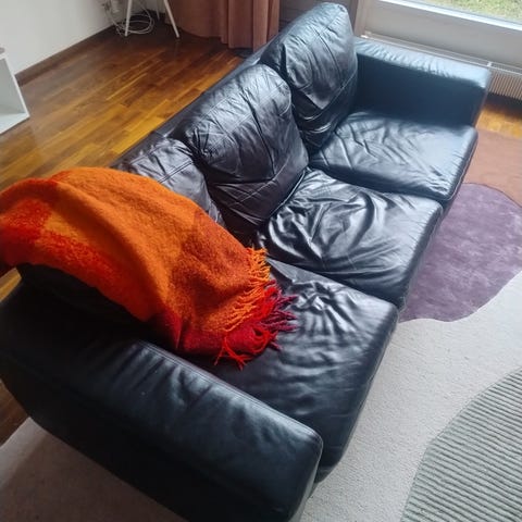 Kauttaaltaan aitoa nahkaa. Yli 10v vanha, "vähän istuttu". Pientä kulumista, vasemman käsinojan ulkolaidalla naarmu jota yritetty peittää(kuva) Myynnissä myös muualla. Vain nouto.
