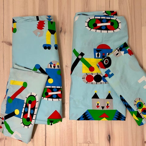 Siistissä kunnossa, värit ehkä jo hieman haalistuneet sekä pesuhaitua. Sopii aikuisten peittoon!☺️ mmm
